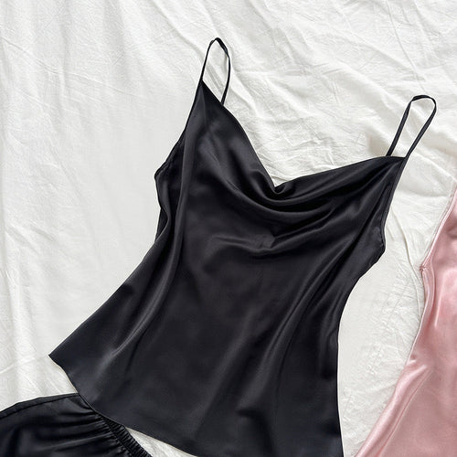 Spaghetti straps contrast maroon cami and black lace trim shorts -